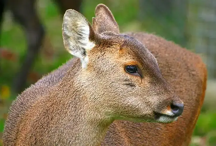 豚鹿的眼睛大而圆,瞳孔呈横向椭圆形,这种眼部结构使其拥有广阔的视野,横向视野可达300度以上,能及时发现周围环境中的潜在危险,尤其是来自侧面和后方的威胁。